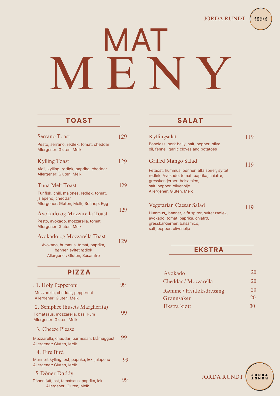 Ønsker du å bestille mat eller leie lokalet i helgene? Trykk på bestill-knappen for å kontakte oss.